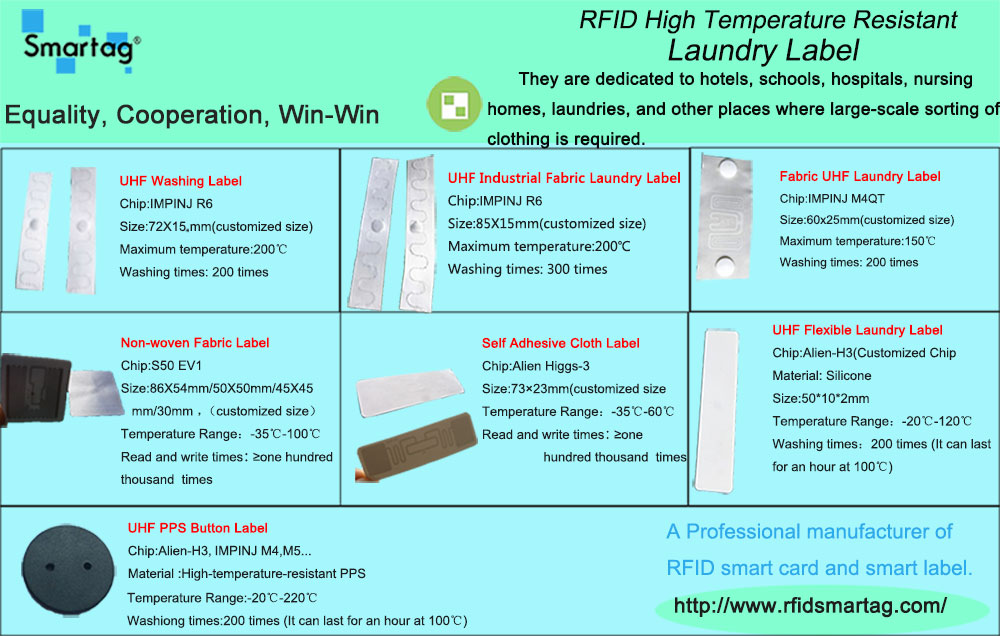 The following is part of the laundry label produced by Shenzhen Smartag Co.,Ltd., which is widely used in various clothing management industries such as hospital dress management, hotel uniform management, uniform rental management, dress rental management, clothes washing and dyeing.